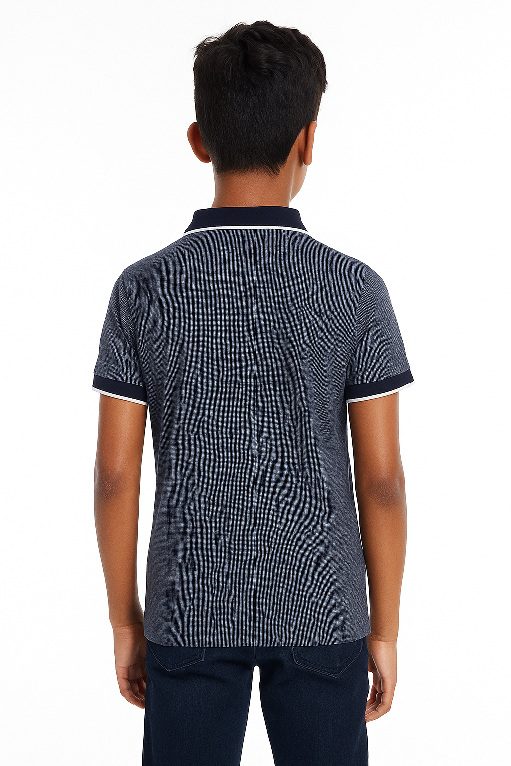 Kids Jacquard Cotton Blend Polo with tipping collar