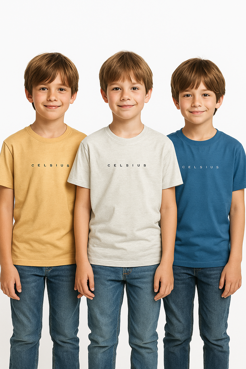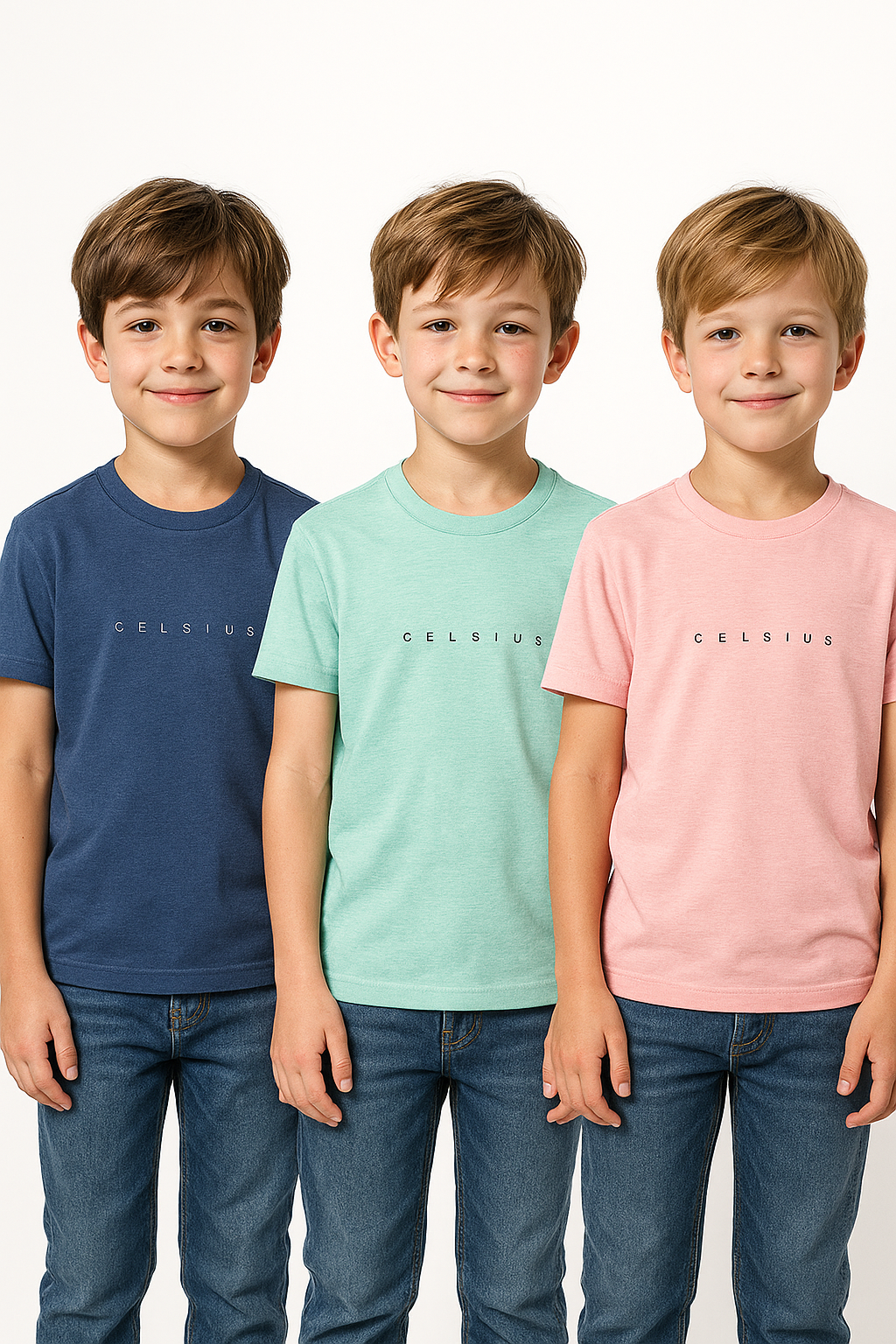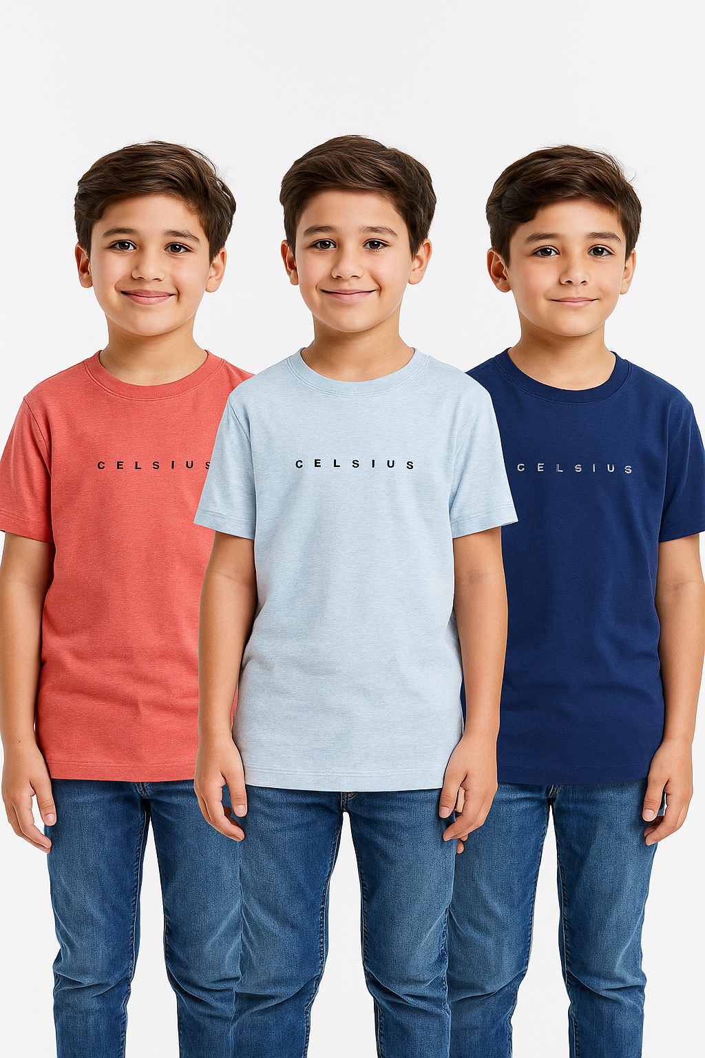 Give your child’s wardrobe the best of both worlds with this 3-piece pack of round neck t-shirts, featuring a mix of mélange and solid colors. Designed with a premium 60% cotton and 40% polyester blend, these tees are lightweight, breathable, and durable—perfect for active kids.