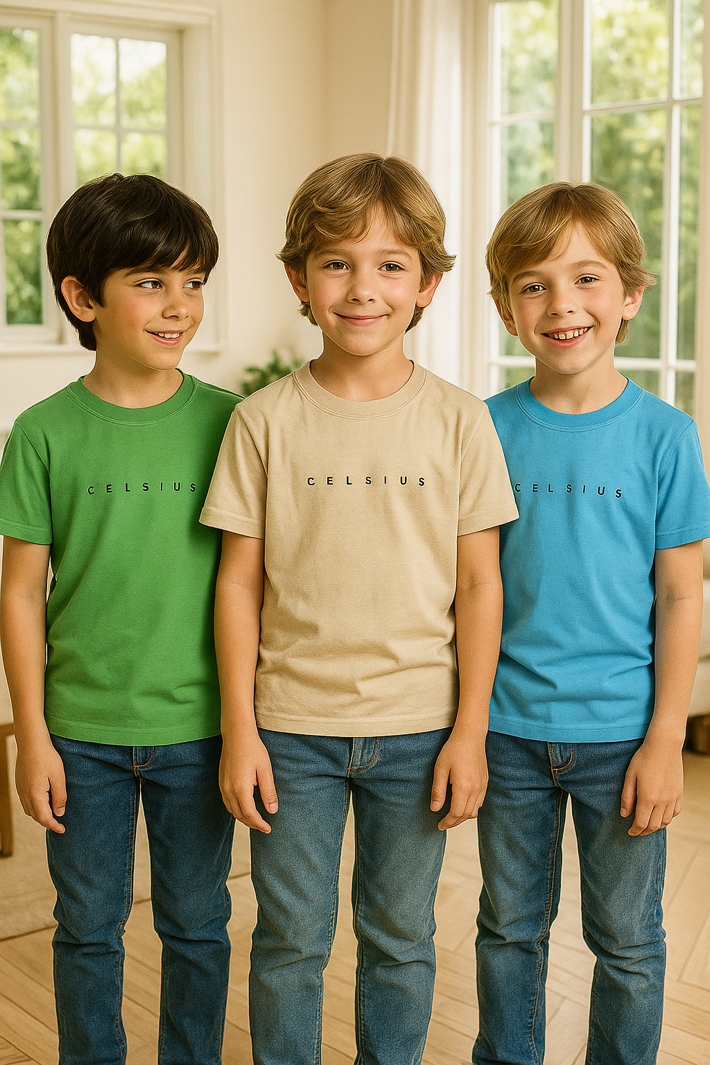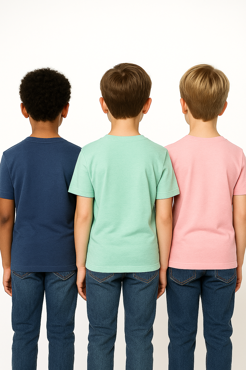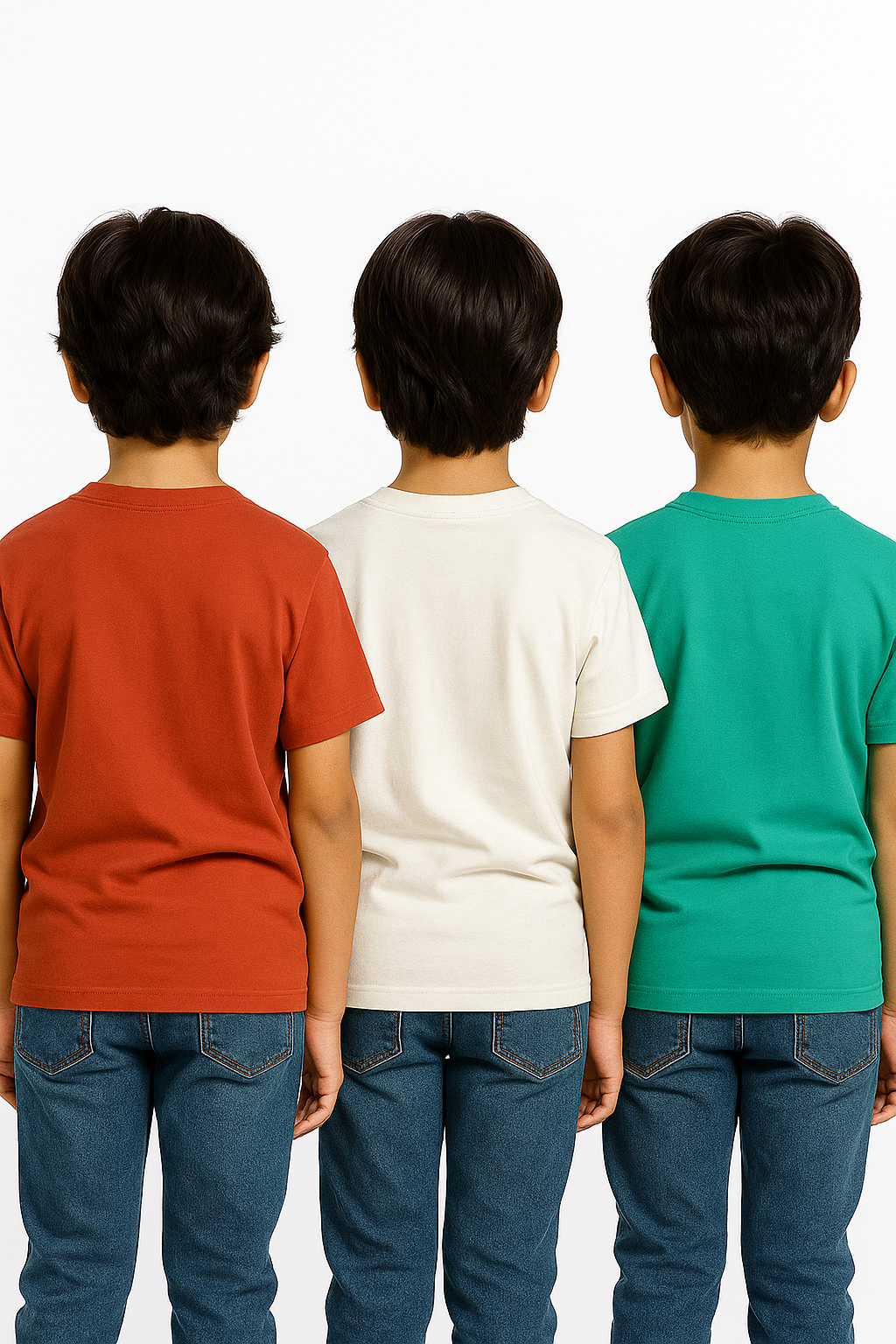 Give your child’s wardrobe the best of both worlds with this 3-piece pack of round neck t-shirts, featuring a mix of mélange and solid colors. Designed with a premium 60% cotton and 40% polyester blend, these tees are lightweight, breathable, and durable—perfect for active kids.
