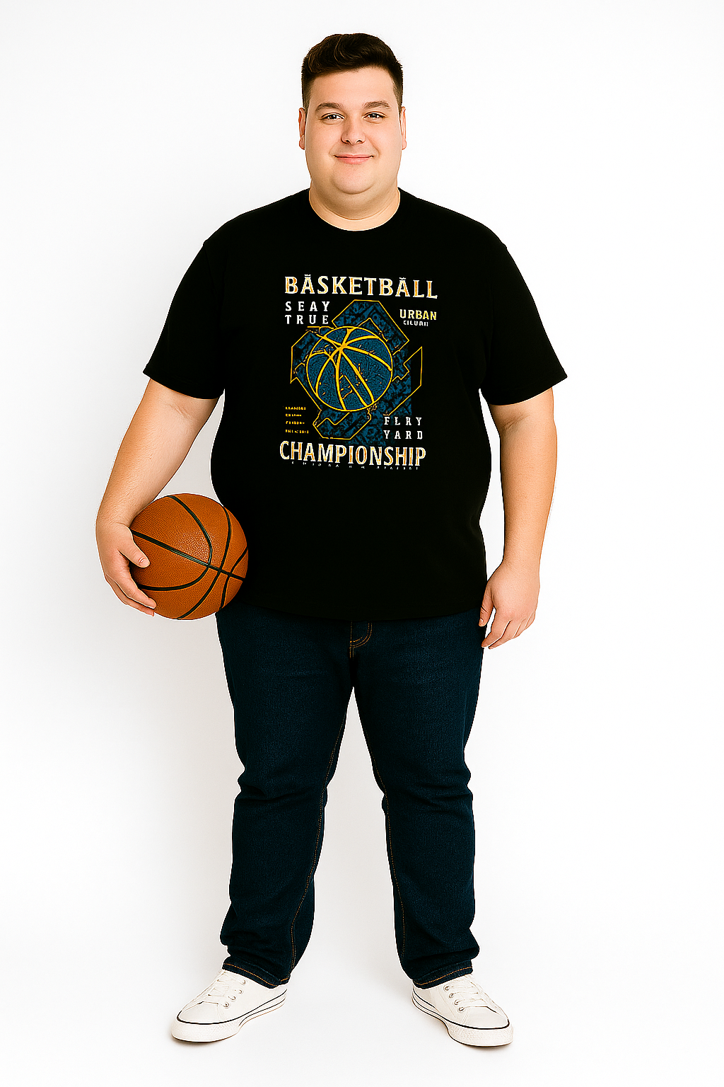 Bring the game-day energy to your wardrobe with the Celsius Men’s “Basketball Championship” Printed Round Neck T-Shirt – Big & Tall, designed for true comfort and style. Crafted from a soft, breathable cotton-blend fabric, this tee ensures ease of movement and a relaxed fit for sizes 3XL to 8XL. The bold basketball-inspired graphic adds a sporty, streetwear edge — perfect for fans who live and breathe the game.