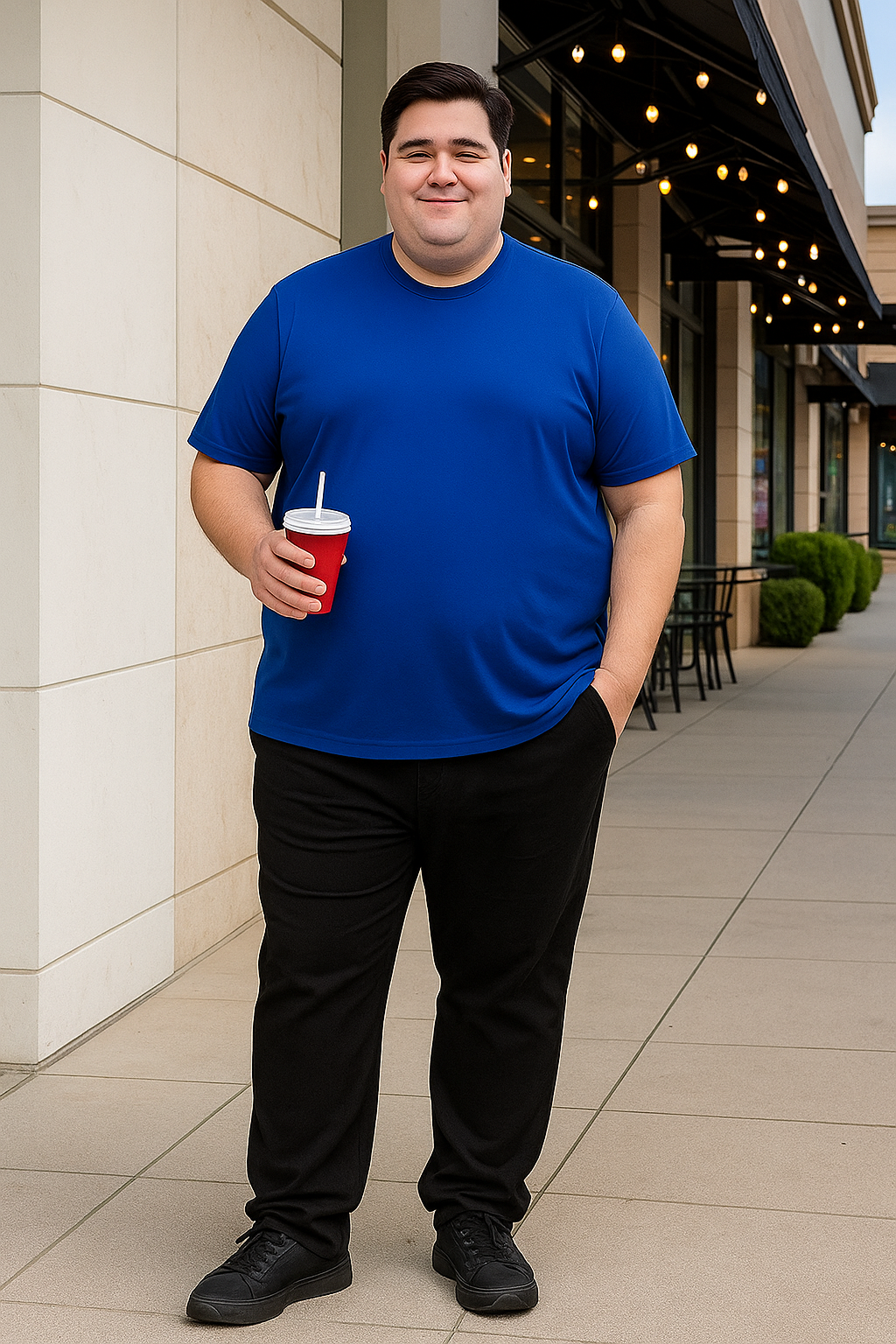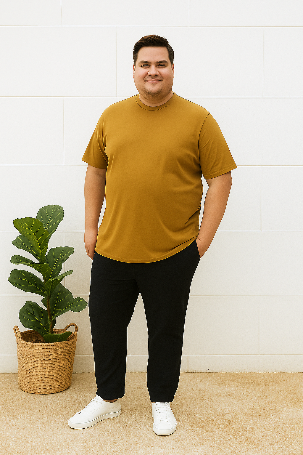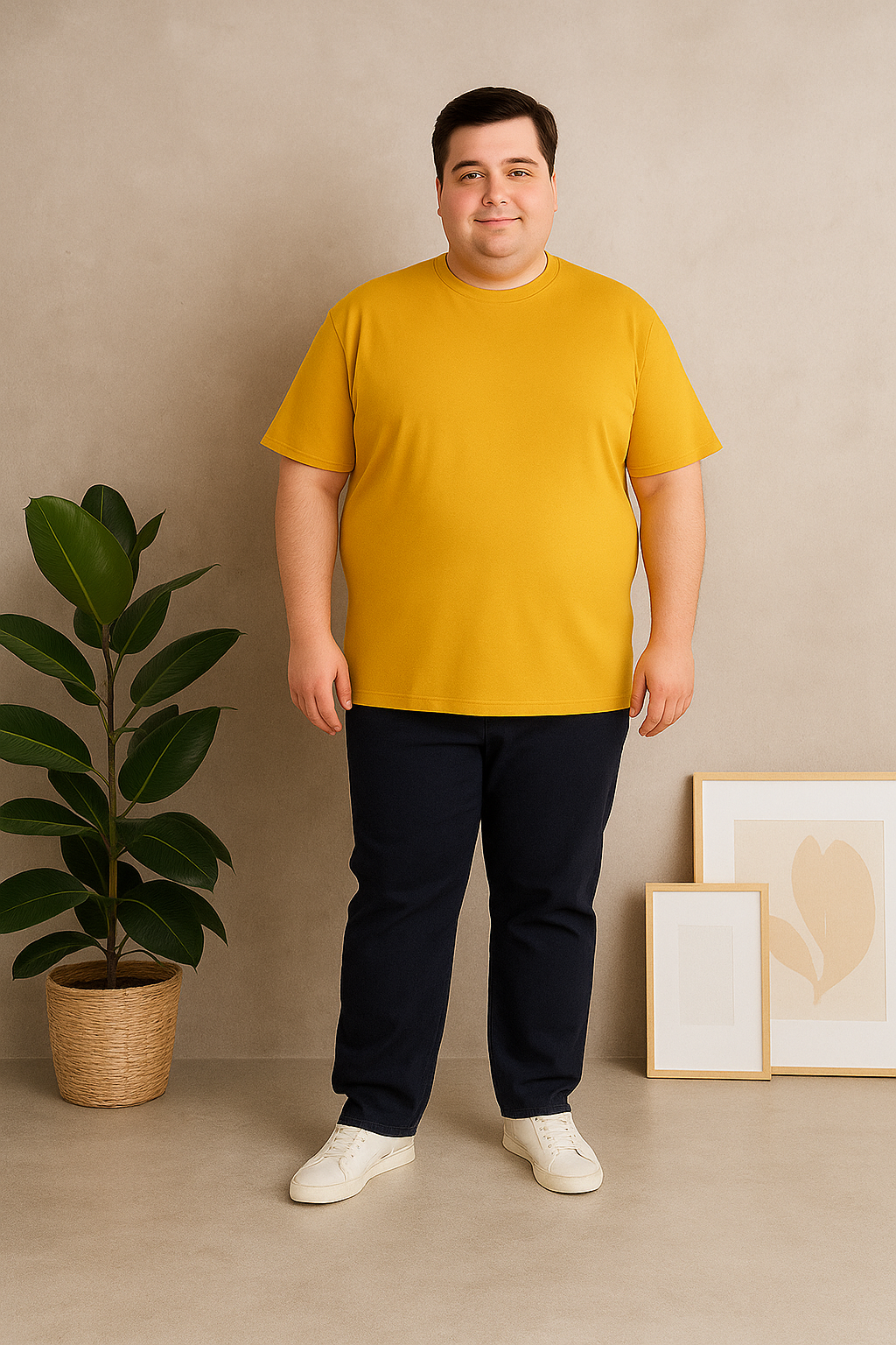 Designed specifically for bigger frames, it features extended lengths, roomier sleeves, and a relaxed fit that doesn’t cling. Whether you're dressing it up or down, this essential tee is available in 30 stylish colours to match every mood, occasion, and personality.