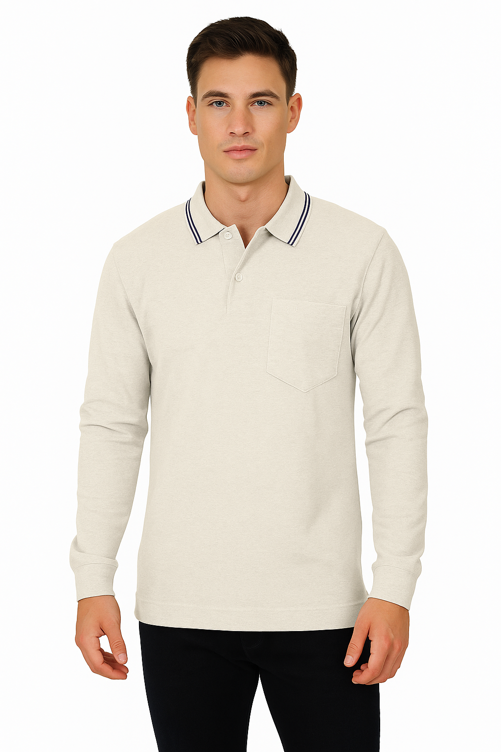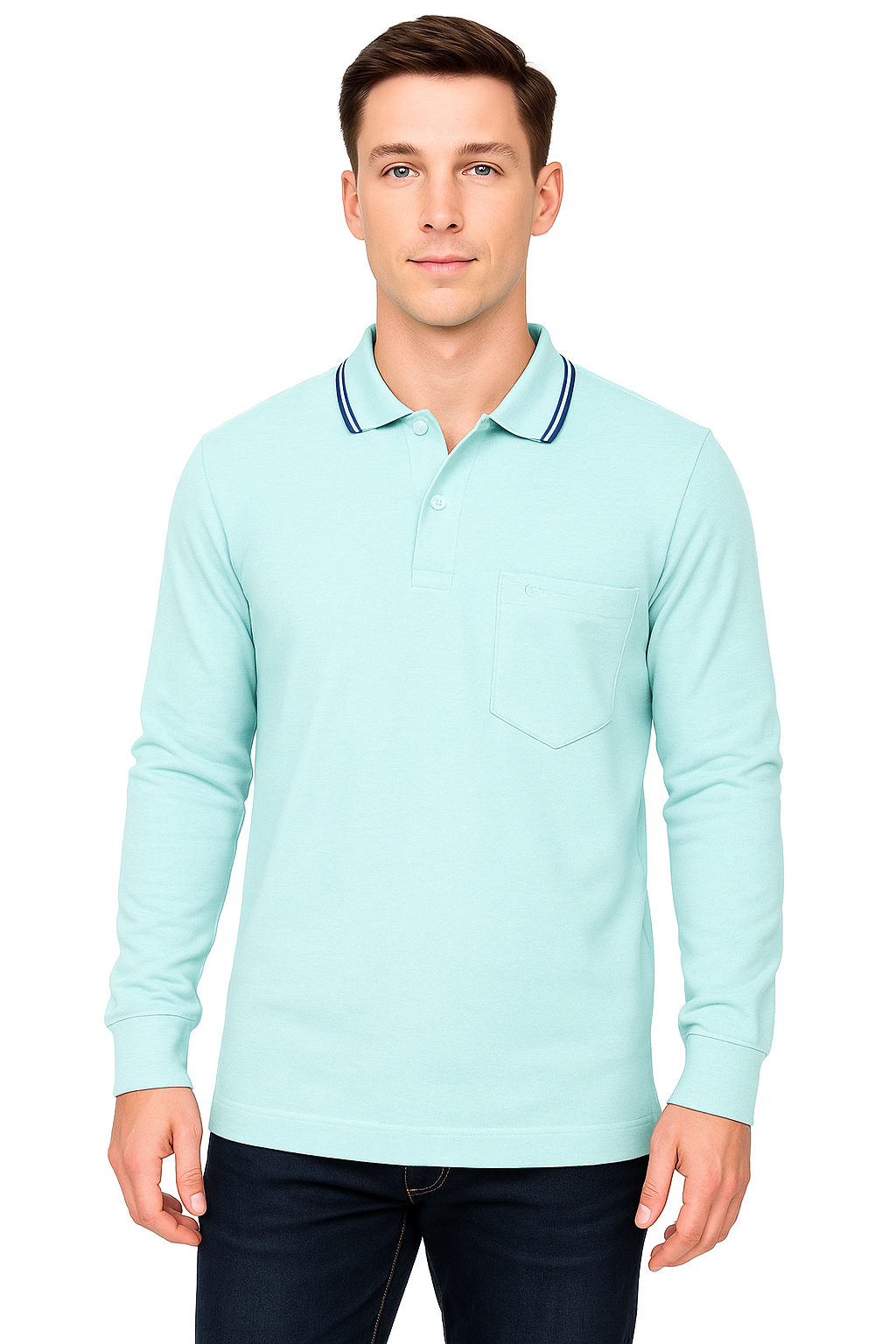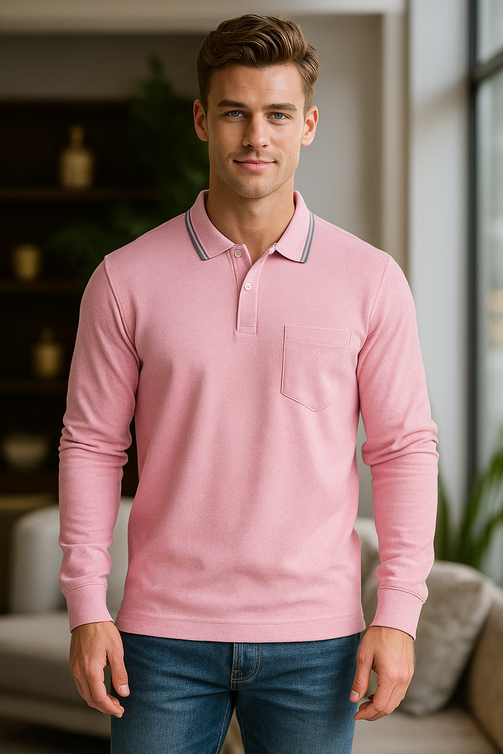 Level up your everyday essentials with this soft pink long sleeve polo t-shirt. Made from a breathable 60% cotton and 40% polyester blend, this polo offers a perfect balance of comfort and durability. Designed for effortless style, it features a subtle chest pocket, a classic button placket, and a contrast-tipped collar for a touch of sporty elegance. Ideal for layering or wearing solo, this piece transitions smoothly from casual Fridays to weekend outings. Available in 10 versatile colors.