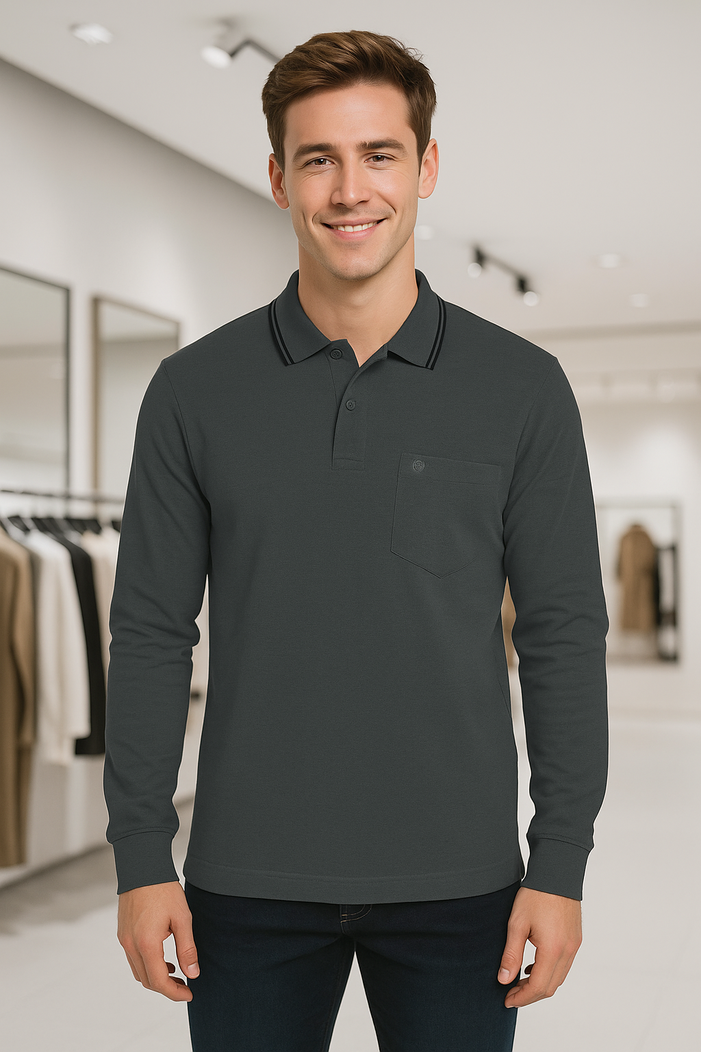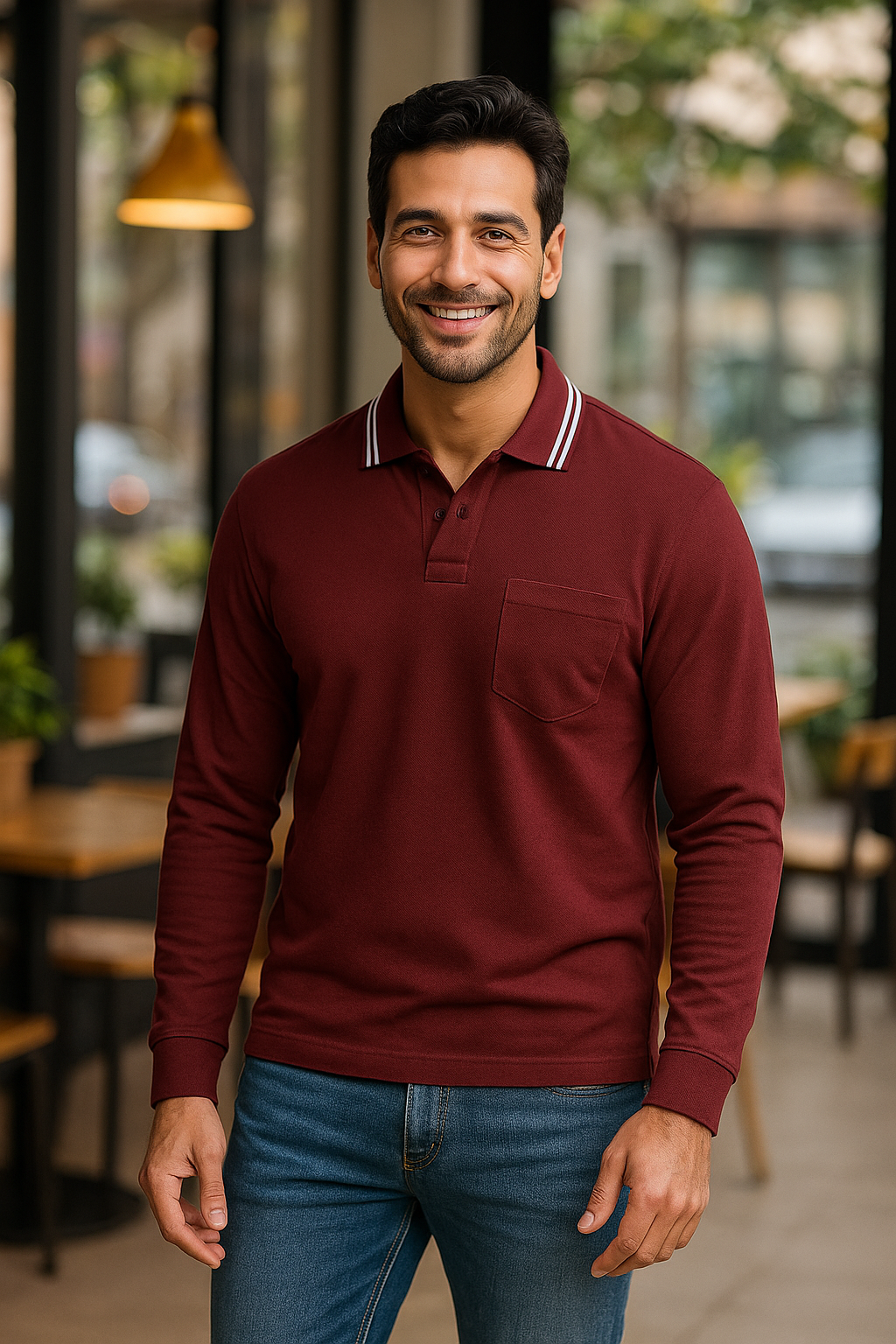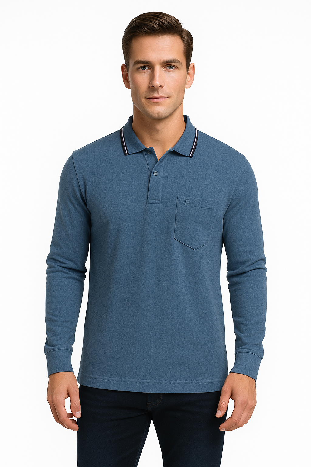 Level up your everyday essentials with this soft pink long sleeve polo t-shirt. Made from a breathable 60% cotton and 40% polyester blend, this polo offers a perfect balance of comfort and durability. Designed for effortless style, it features a subtle chest pocket, a classic button placket, and a contrast-tipped collar for a touch of sporty elegance. Ideal for layering or wearing solo, this piece transitions smoothly from casual Fridays to weekend outings. Available in 10 versatile colors.