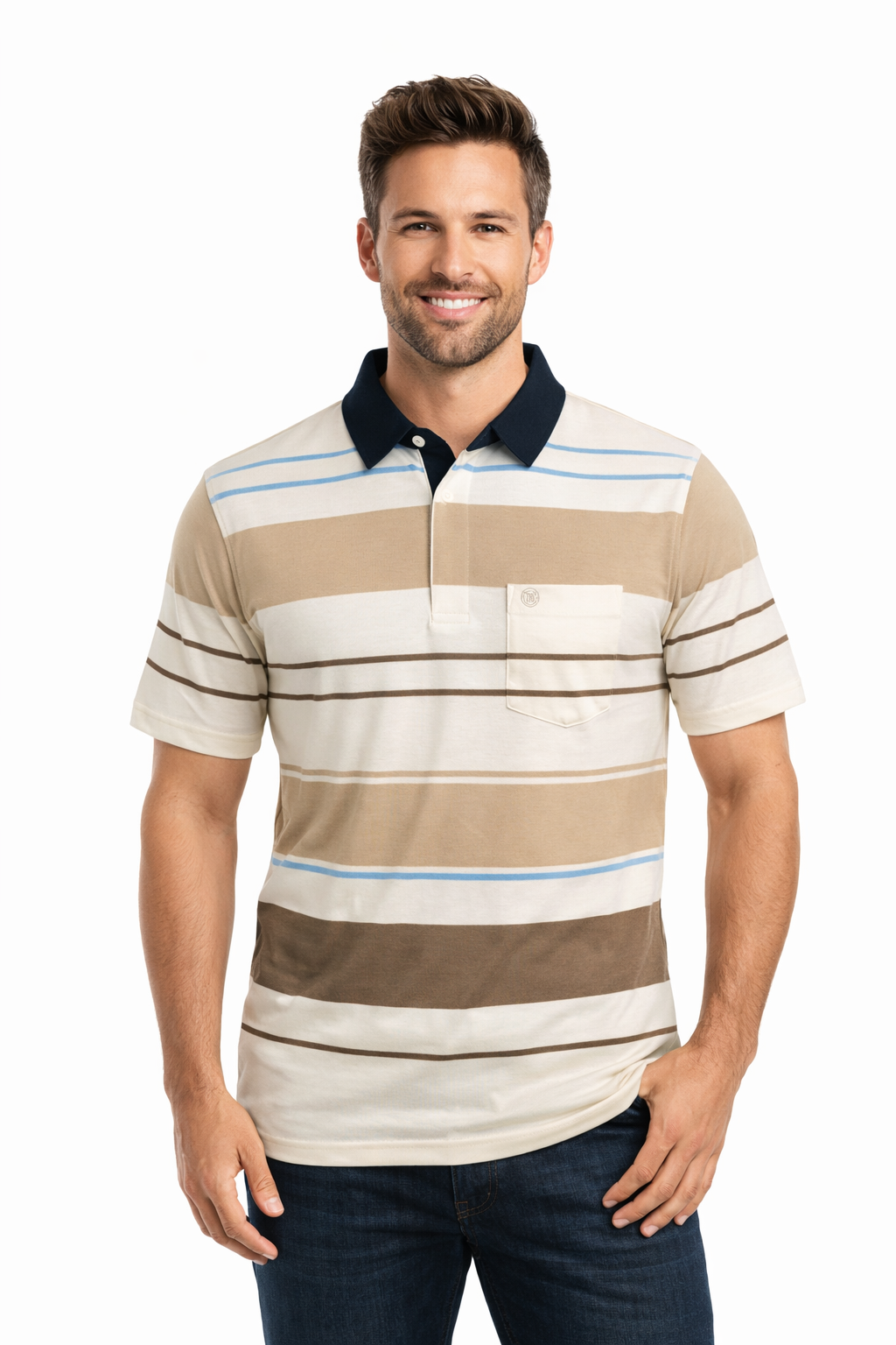 Men's Striped Long Sleeve Polo Shirt – Casual & Comfortable