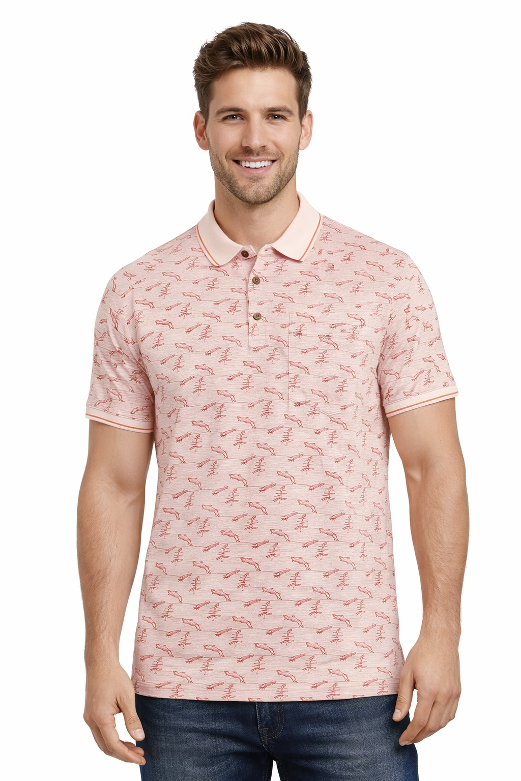 Refresh your casual wardrobe with this Men’s Printed Polo , designed in a breathable cotton-blend fabric that delivers lasting comfort and a refined look. , making it ideal for warm weather wear. Featuring an all-over printed stripe pattern, classic polo collar, and button , this polo adds a modern touch to a timeless silhouette. Perfect for office-casual settings, weekend outings, or relaxed evenings, it pairs effortlessly with jeans, chinos, or shorts for a smart yet easygoing style.