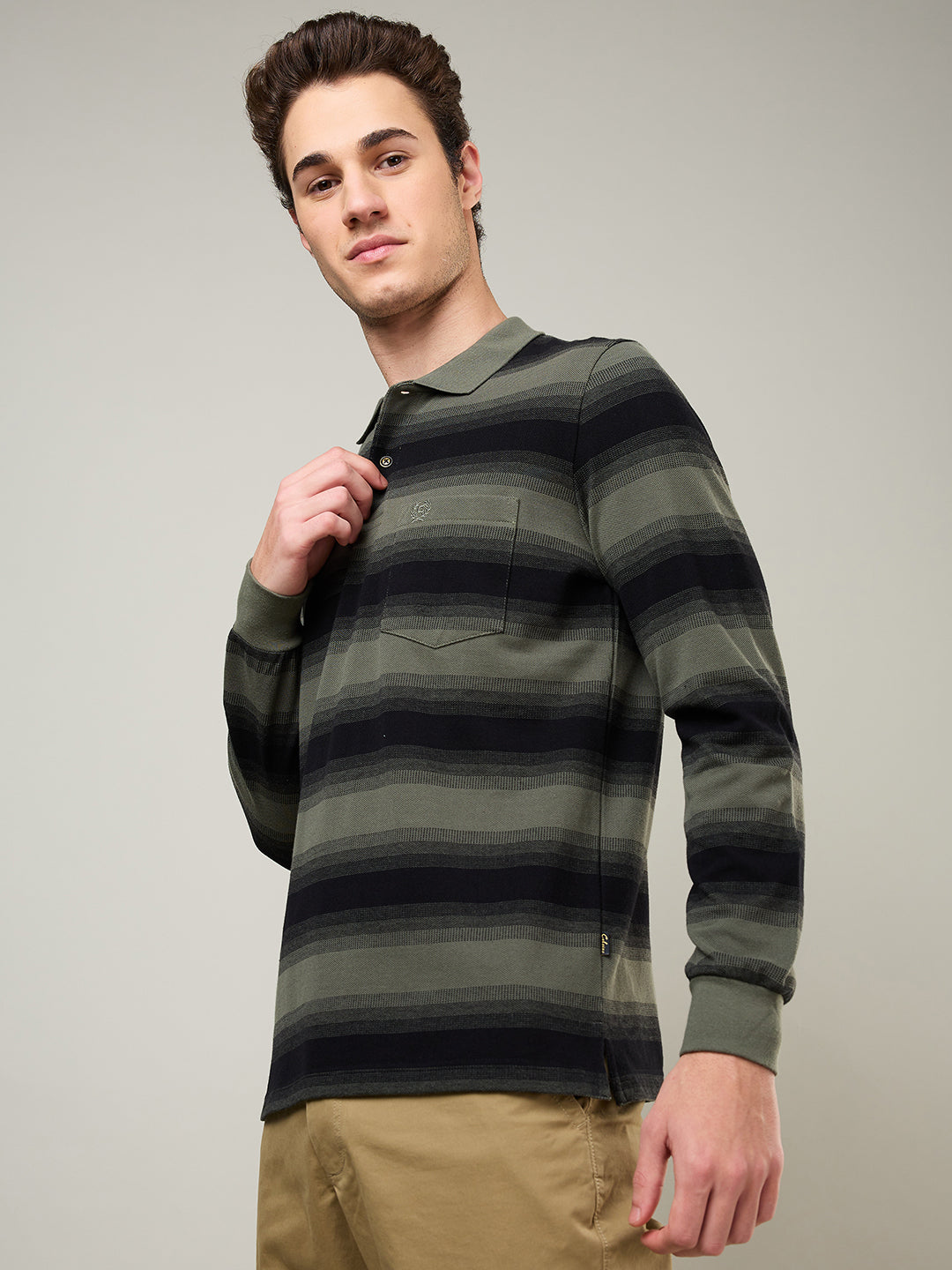 Step into a subtle, earthy vibe with this deep lichen green and black striped polo. Made for men who like muted tones and bold texture, this long sleeve polo is crafted from a 60% cotton and 40% polyester blend that delivers softness, structure, and everyday ease.