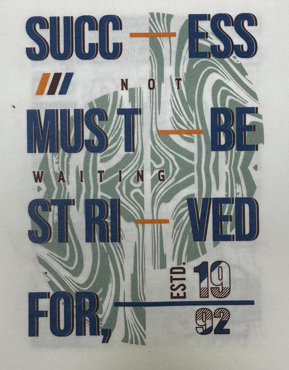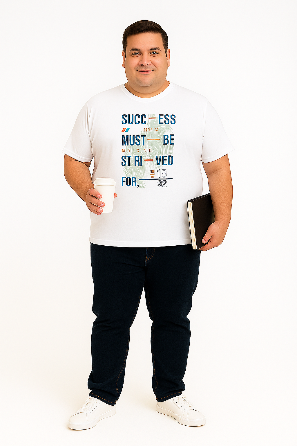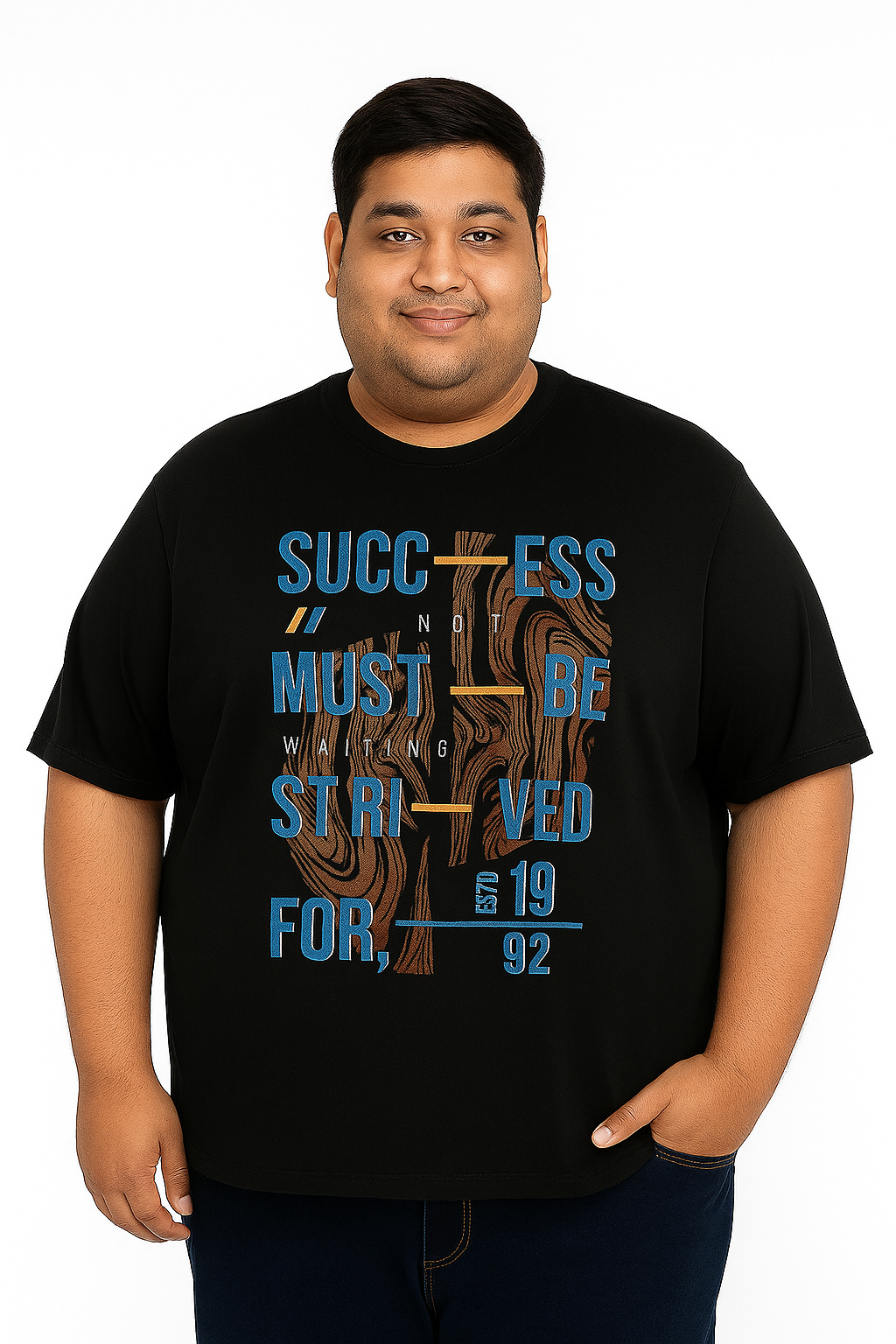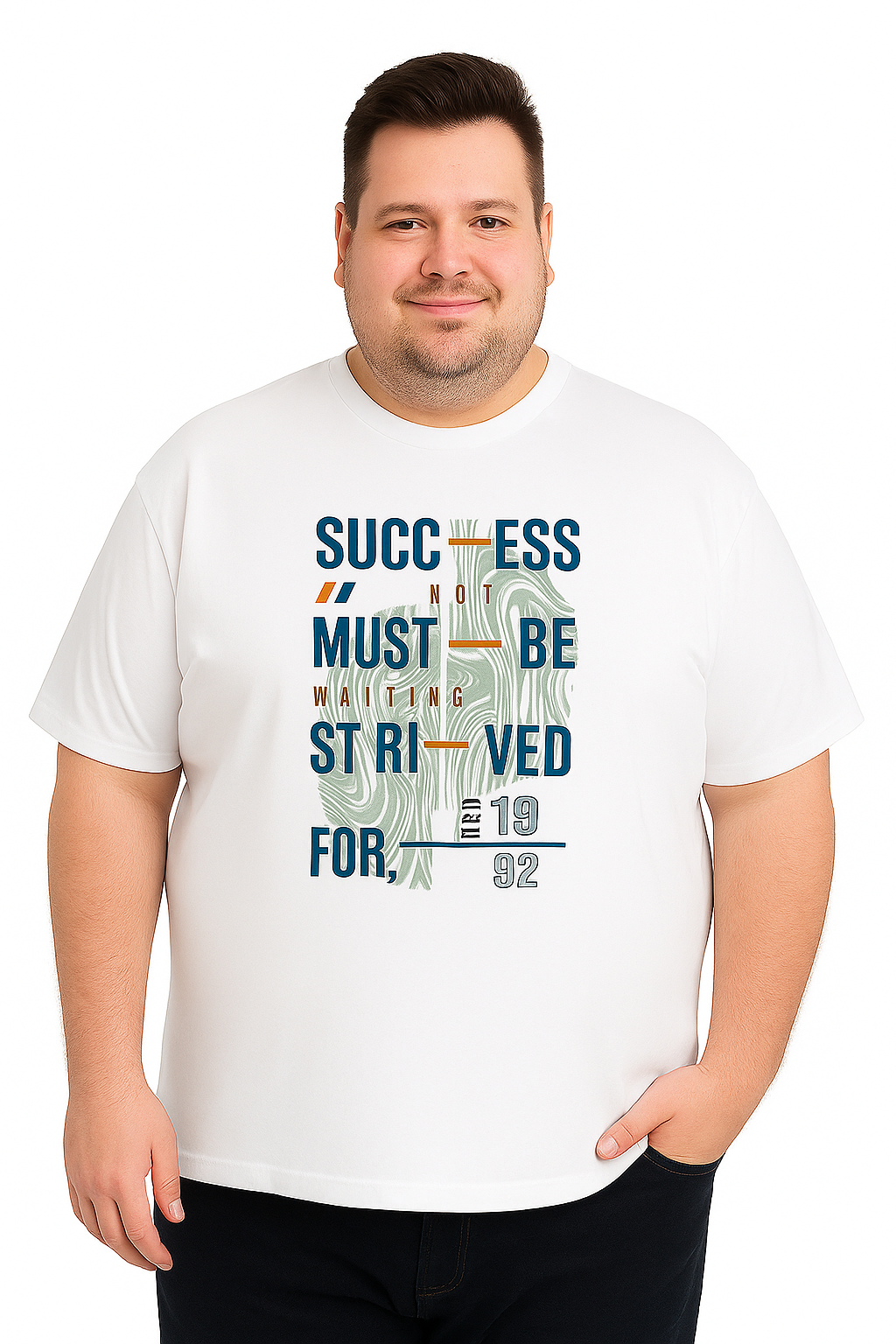 Men’s Printed Round Neck Tee – “Success Must Be Strived For” - Big & Tall