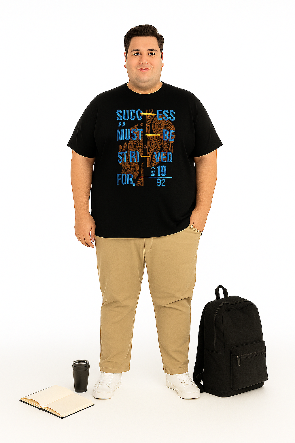 Stay driven and comfortable with the Celsius Men’s “Success Must Be Strived For” Printed Round Neck T-Shirt – Big & Tall, crafted for men who believe in persistence and power. Designed for sizes 3XL to 8XL, this tee features a motivational front print that inspires ambition, while the soft cotton-blend fabric ensures breathability and comfort for everyday wear. The crew neck and half sleeves make it a versatile addition to your wardrobe — perfect for casual outings, workouts, or lounging.
