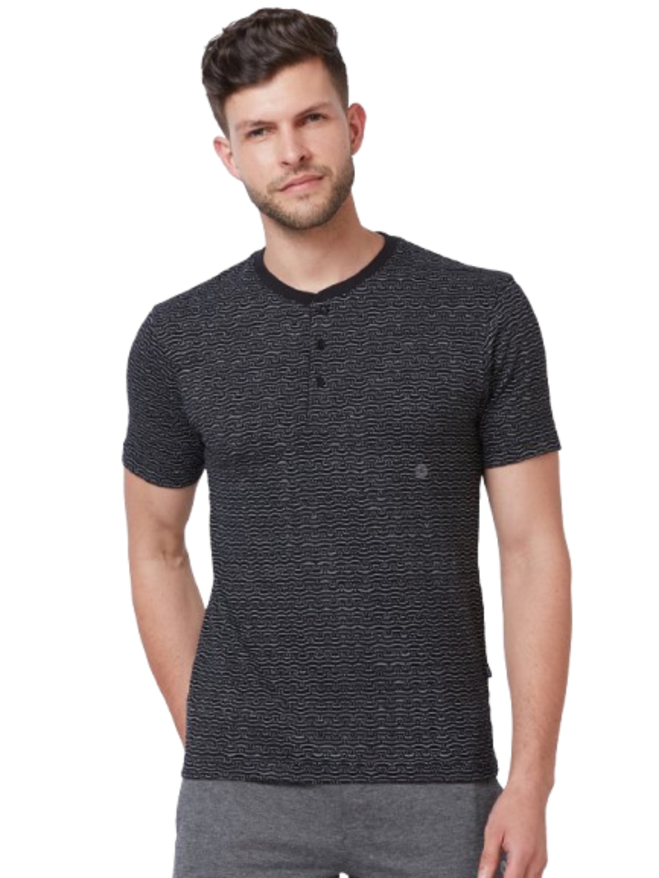 Men’s Jacquard Henley Neck T-Shirt | Textured Casual Wear