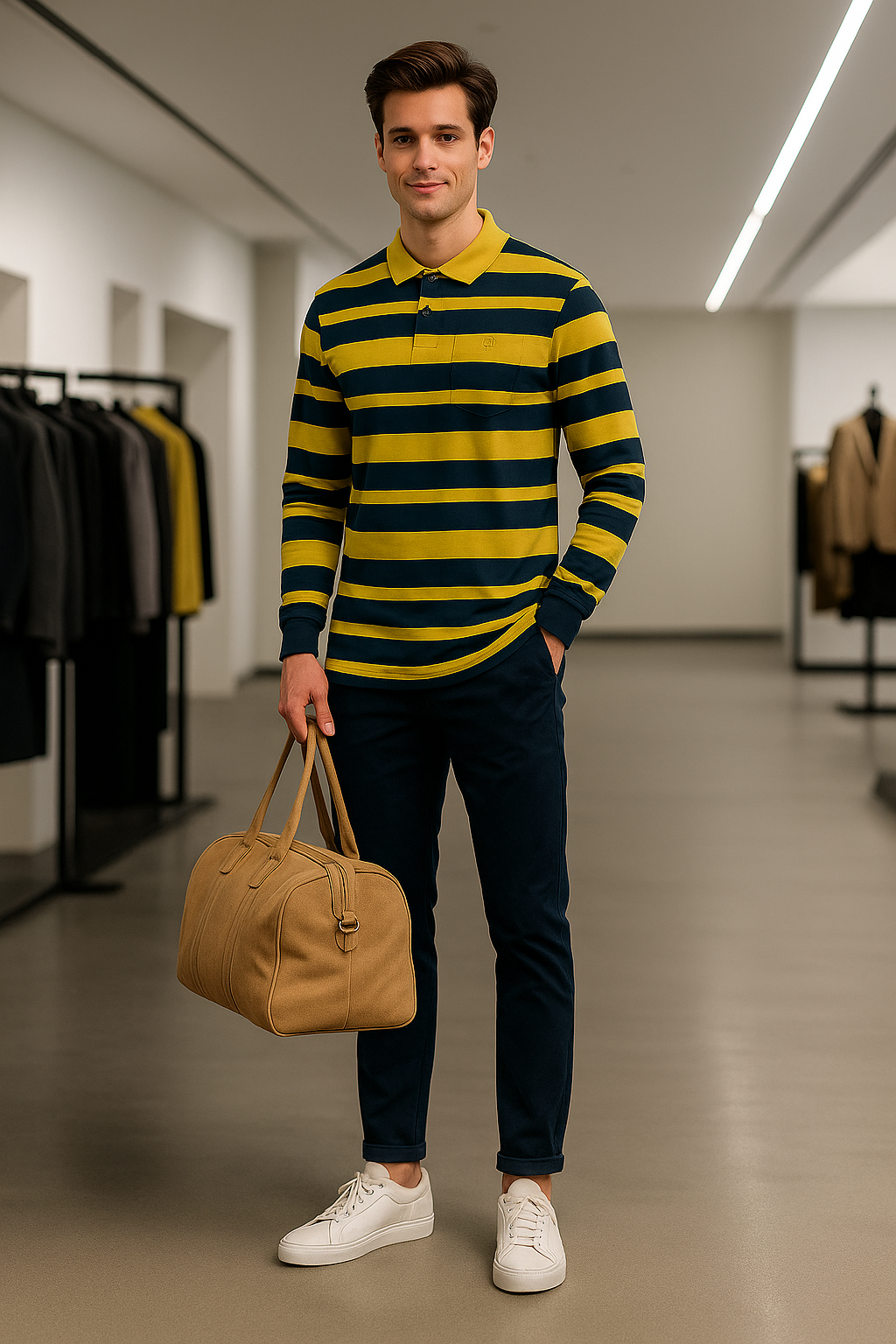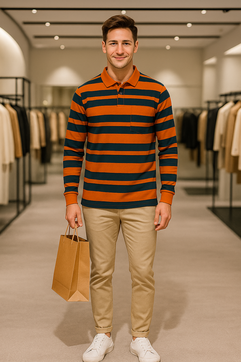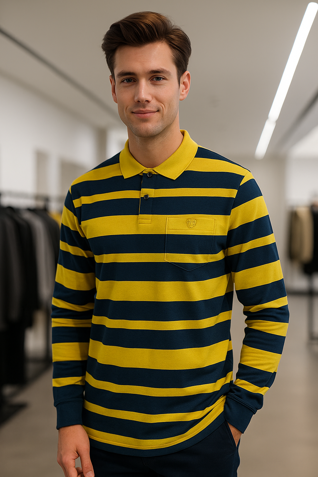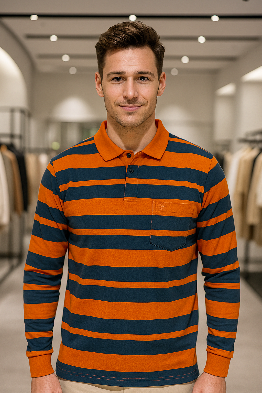 Elevate your everyday style with our Men’s Striped Long Sleeve Polo, crafted from a premium 60% cotton and 40% polyester blend for the perfect balance of comfort, breathability, and durability. Designed in a regular fit with classic horizontal stripes, this polo is versatile enough for casual outings, weekend wear, and smart-casual occasions.